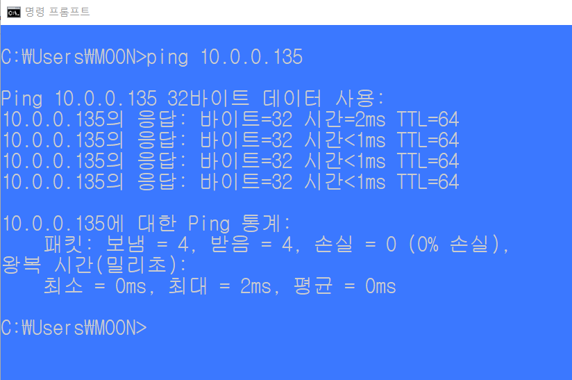 host에서 10.0.0.135로 ping을 날리면 정상적으로 전송되었습니다!