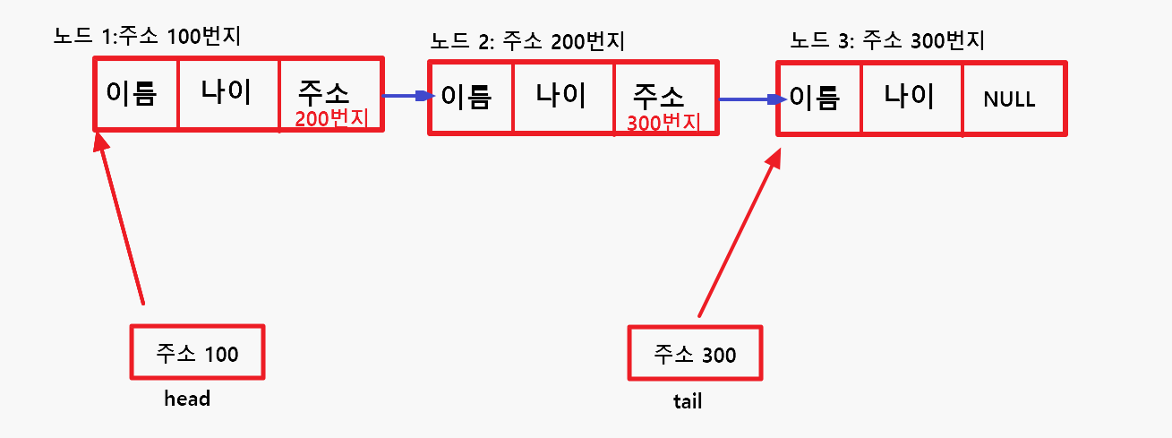 각각 노드들은 다음 노드의 주소를 알고 있어 서로 연결되어 있는 모습입니다.