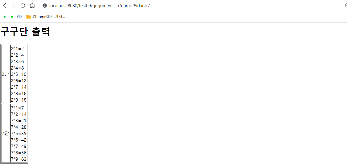 request.getParameterValues를 사용하여 guguForm.jsp에서 넘겨져오는 값들을 배열형으로 받았습니다.