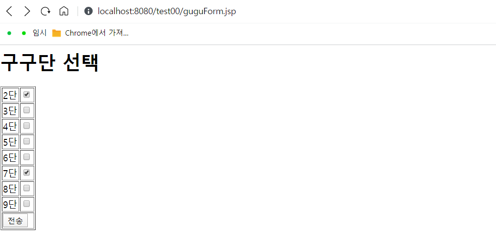 input type = checkbox를 사용하여 구구단을 선택하여 출력이 가능합니다.
