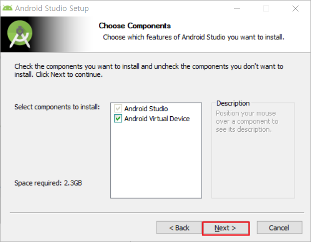 2-3 선택할 수 있는 컴포넌트를 보여줍니다. 에뮬레이터 사용을 위한 패키지만 선택가능합니다.