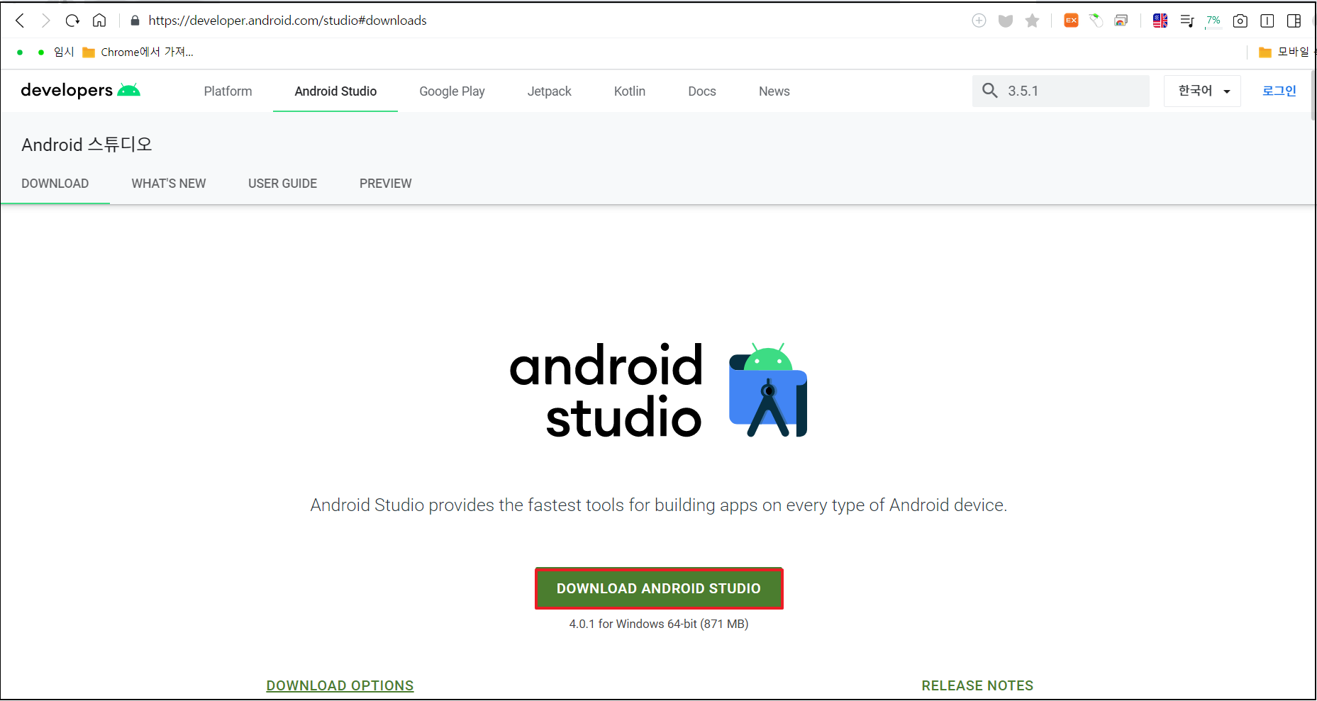 안드로이드 스튜디오 설치하기. 본문
