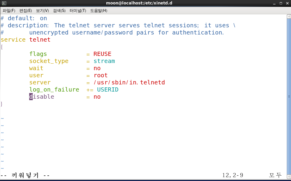 5. server = /usr/sbin/in.telnetd // 서비스를 처리할 프로그램 위치
