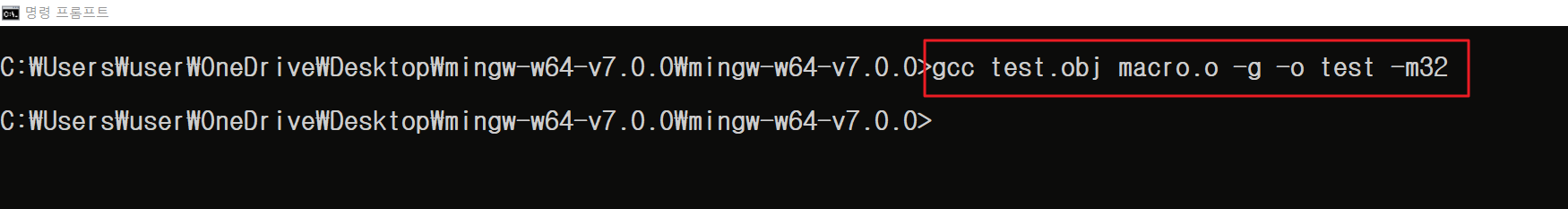 - gcc.exe <중간파일이름> -g -o <실행파일 이름> -m64